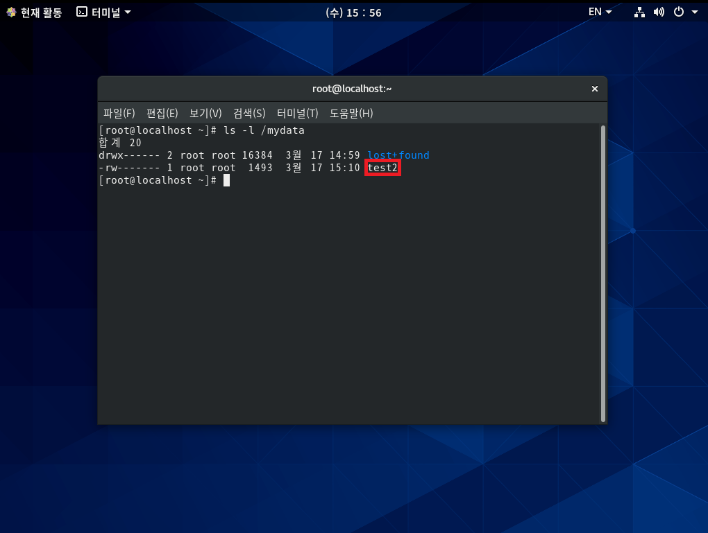 * 이제 /mydata 디렉터리는 /dev/sda2가 아닌 /dev/sdb1에 있다.