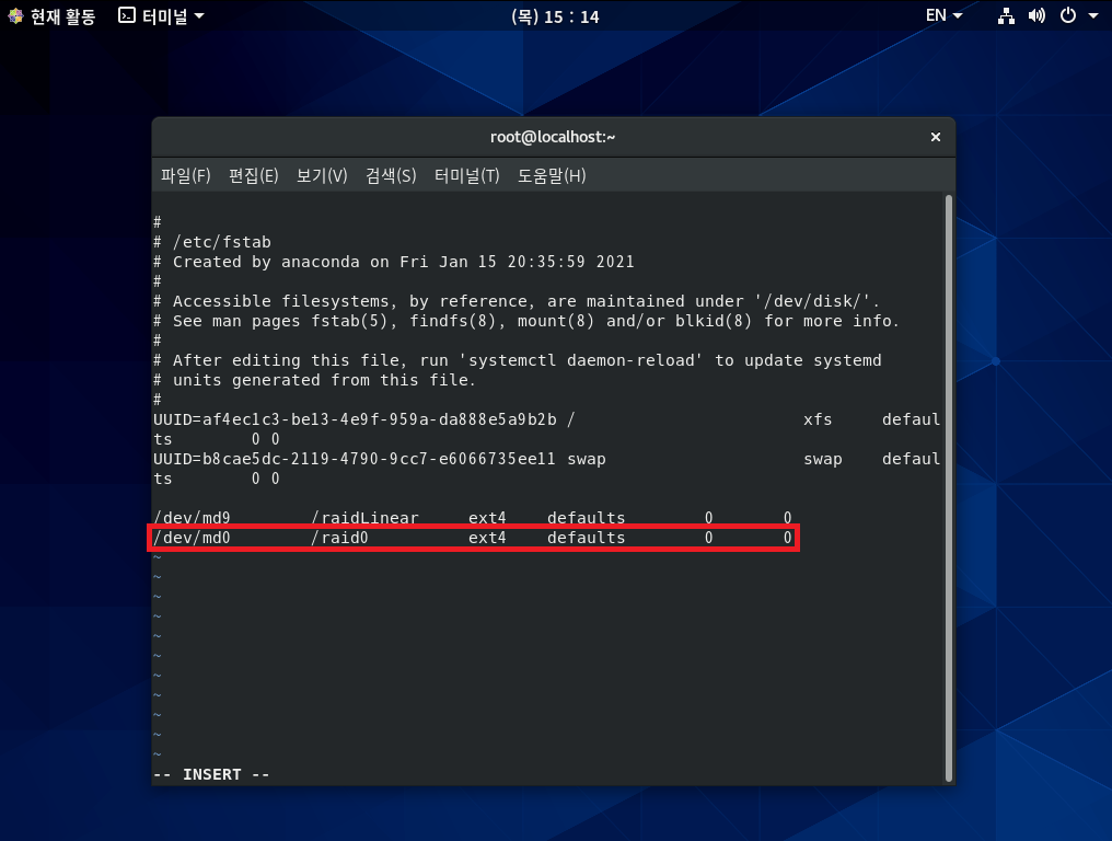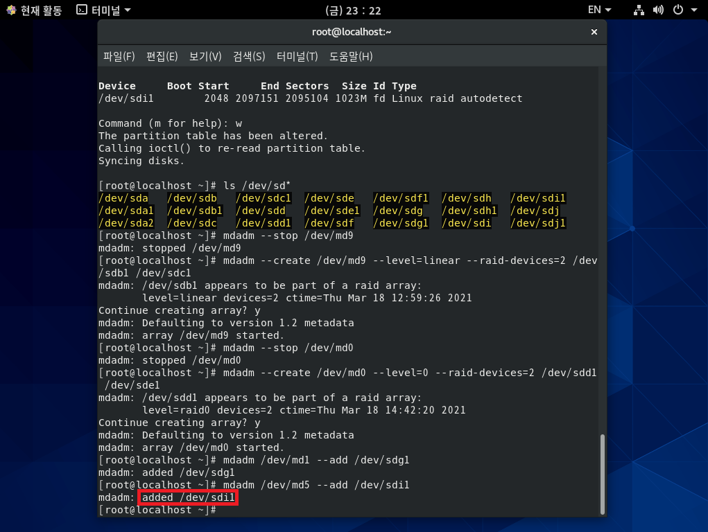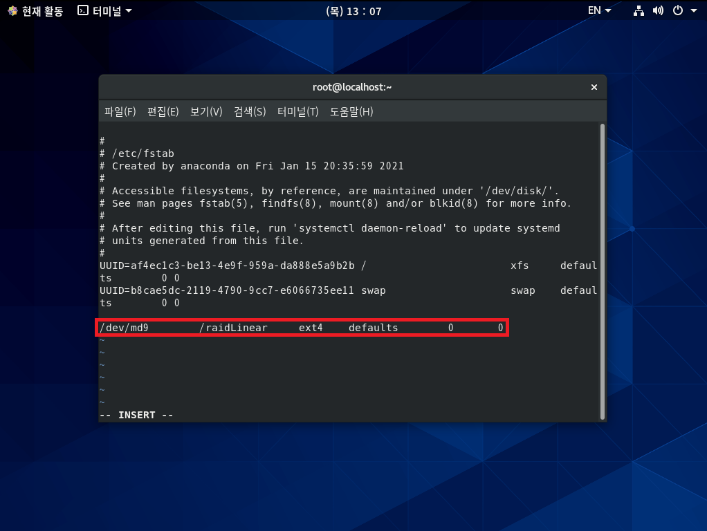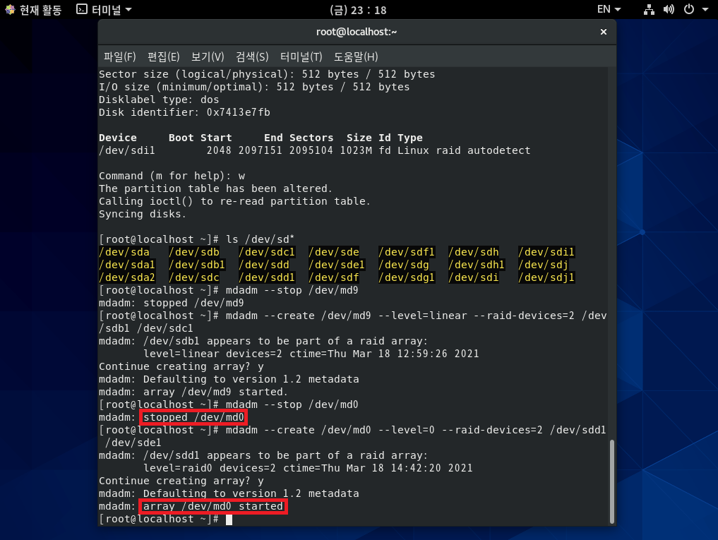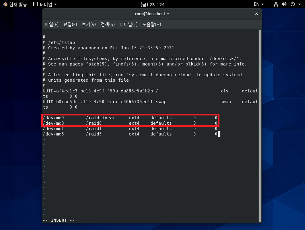 stpe 4 Linear RAID와 RAID 0 장치를 중지시키고, /etc/fstab에서도 제거하자.