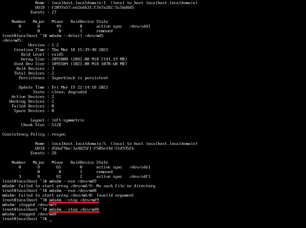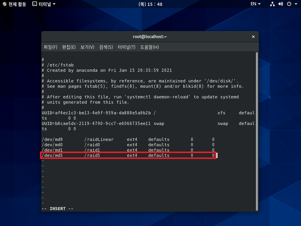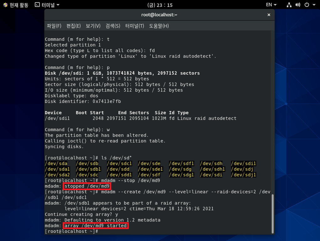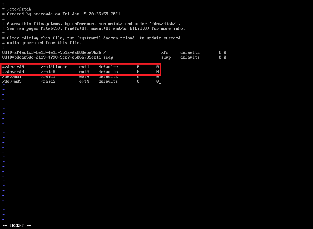 stpe 4 Linear RAID와 RAID 0 장치를 중지시키고, /etc/fstab에서도 제거하자.