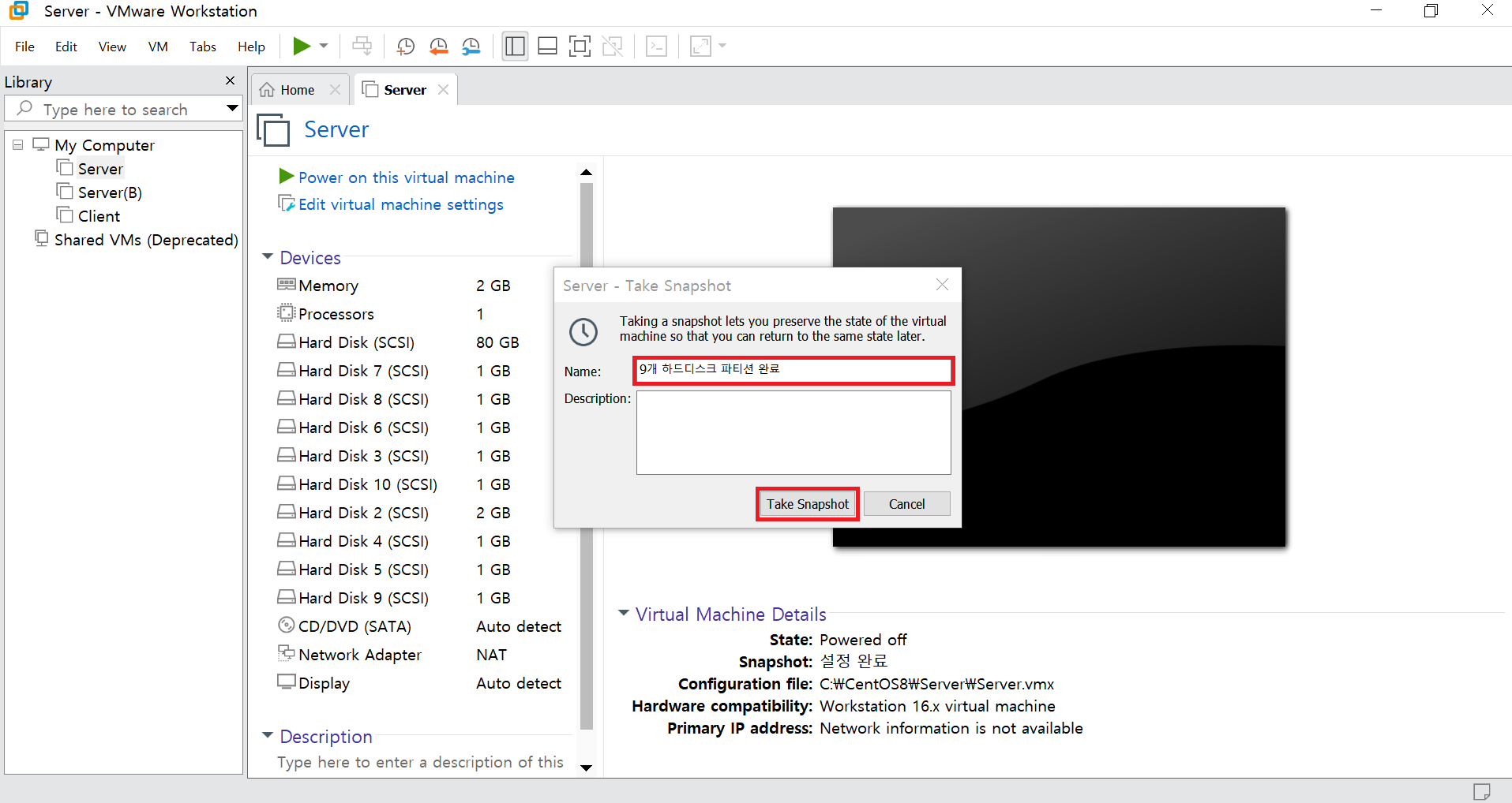 step 3 지금까지 설정한 내용을 스냅숏으로 저장하자.