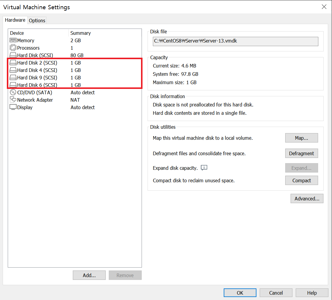 | SCSI 0:1 | 2GB | disk0-1.vmdk | Linear RAID |