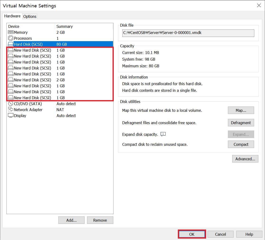 | SCSI 0:2 | 1GB | newDisk0-2.vmdk | Linear RAID |