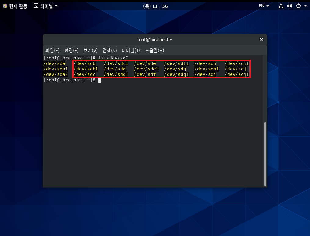 # fdisk /dev/sdb → SCSI 0:1 하드디스크 선택