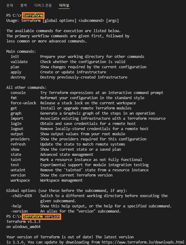 - 또한, 인프라를 프로비저닝하거나 변경하기 전에 "terraform plan"을 실행하여 구성에 대한 실행 계획이 예상과 일치하는지 확인할 수 있으며, 원하는 구성 상태에 도달하기 위해 "terraform apply"을 실행하여 수 백개의 클라우드 제공업체에 변경 사항을 적용할 수 있습니다.
