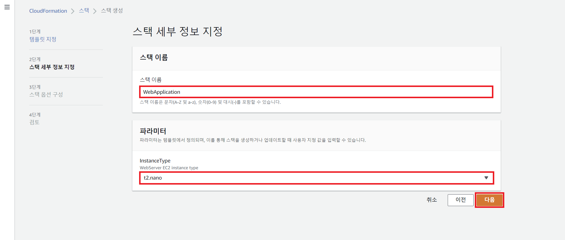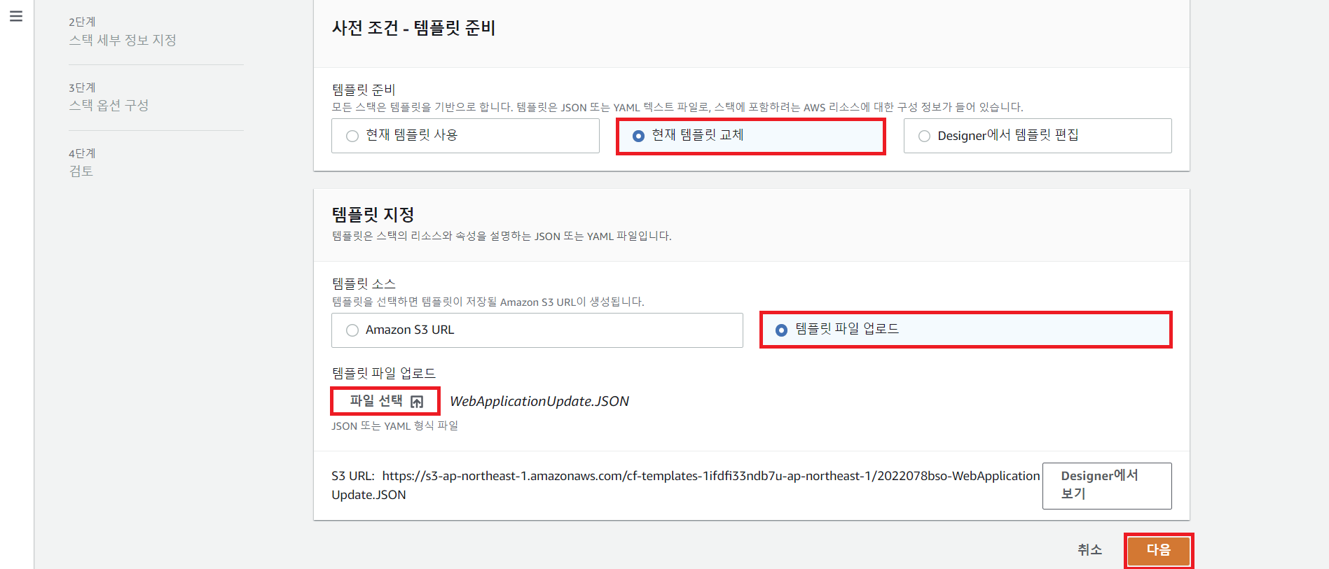 step 2 Cloudformation 스택 업데이트