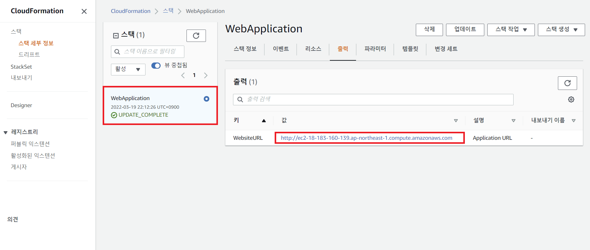 Application을 변경하는 코드를 추가하여 기존 스택을 업데이트한다.