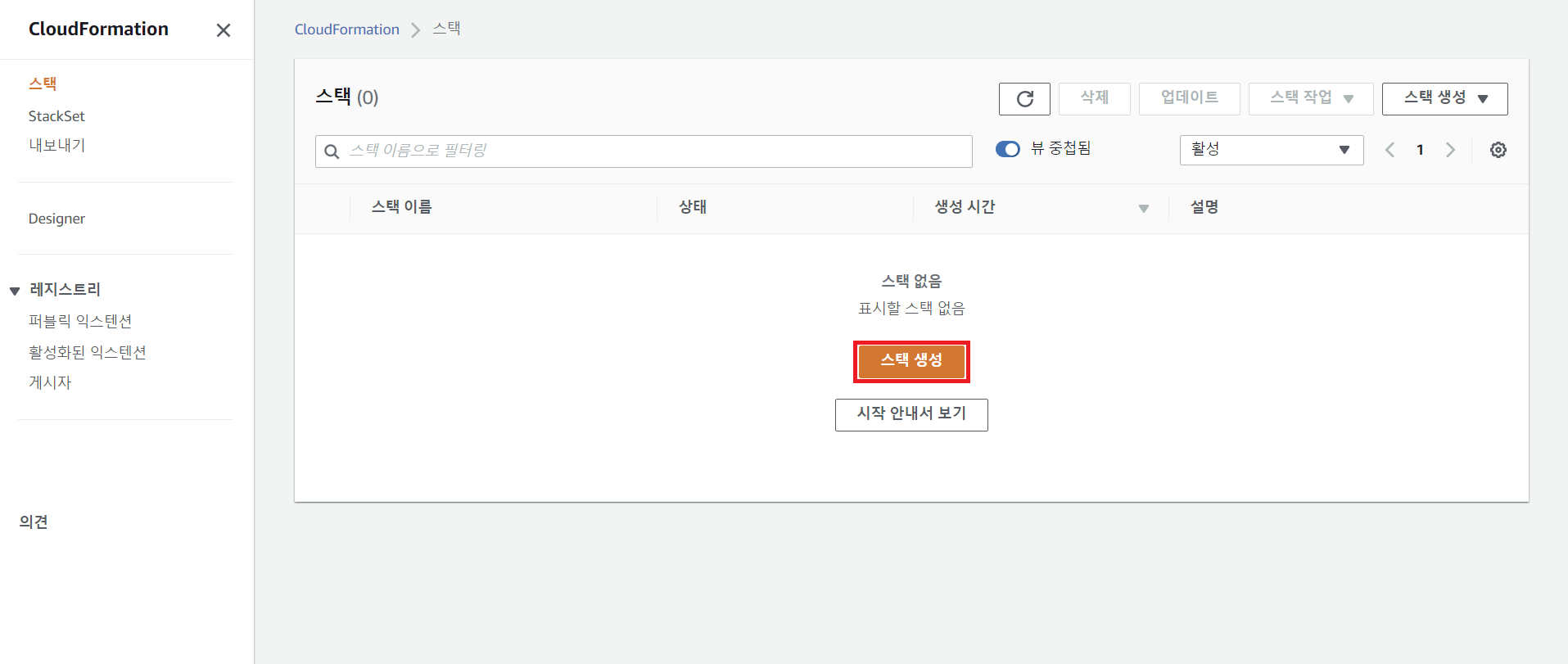 step 1 Cloudformation을 통해 스택 생성