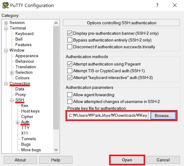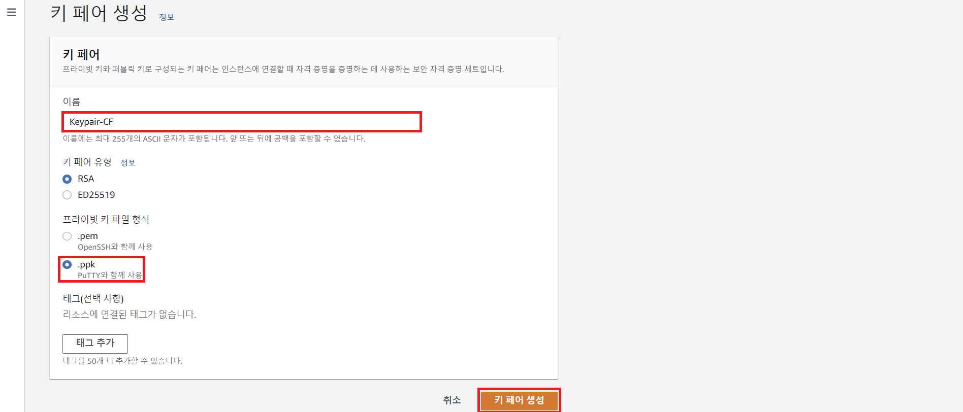 * Cloudformation을 통해 생성된 EC2 인스턴스에 접속하기 위한 Key Pair를 부여하고,