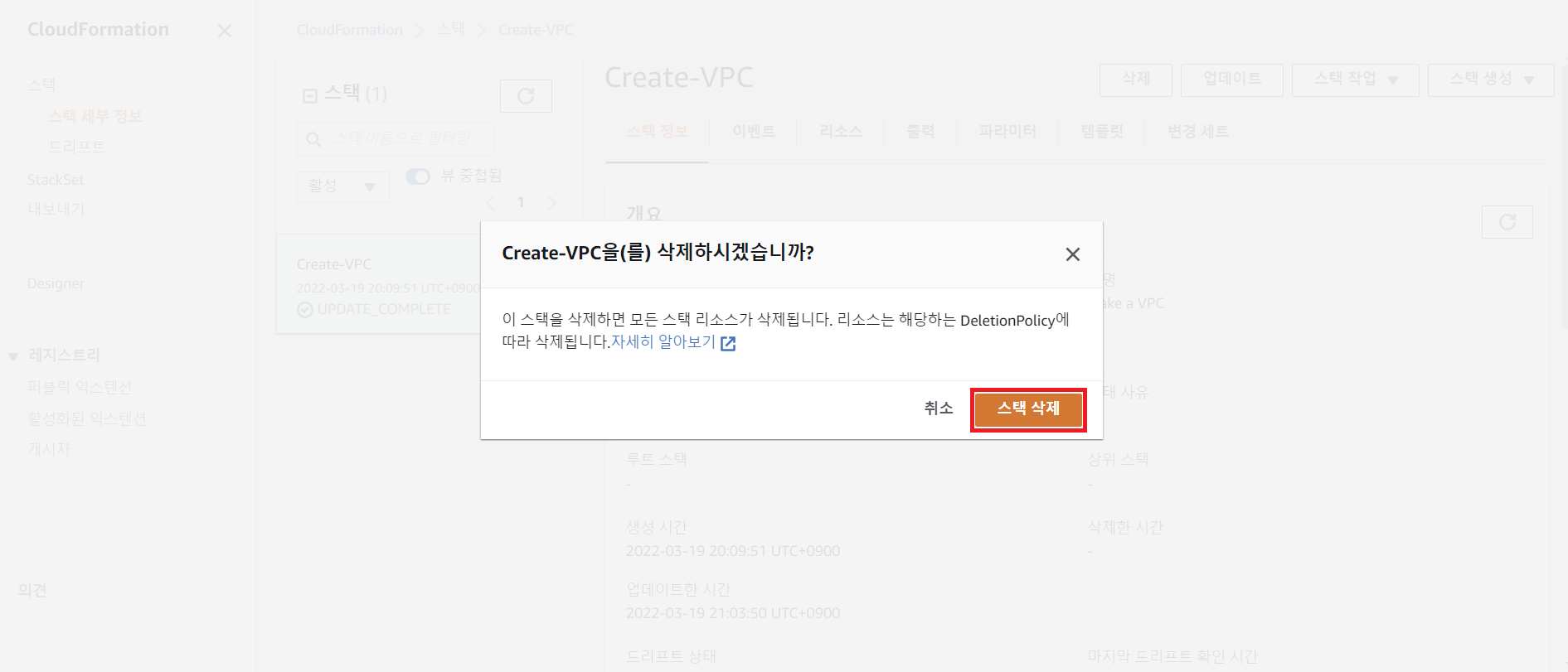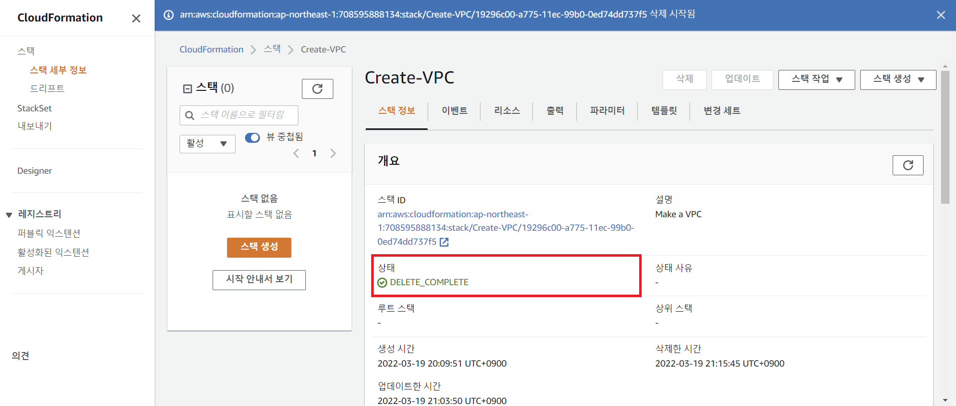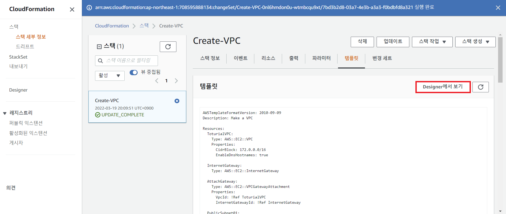 step 3 Cloudformation Designer에서 보기와 스택 삭제