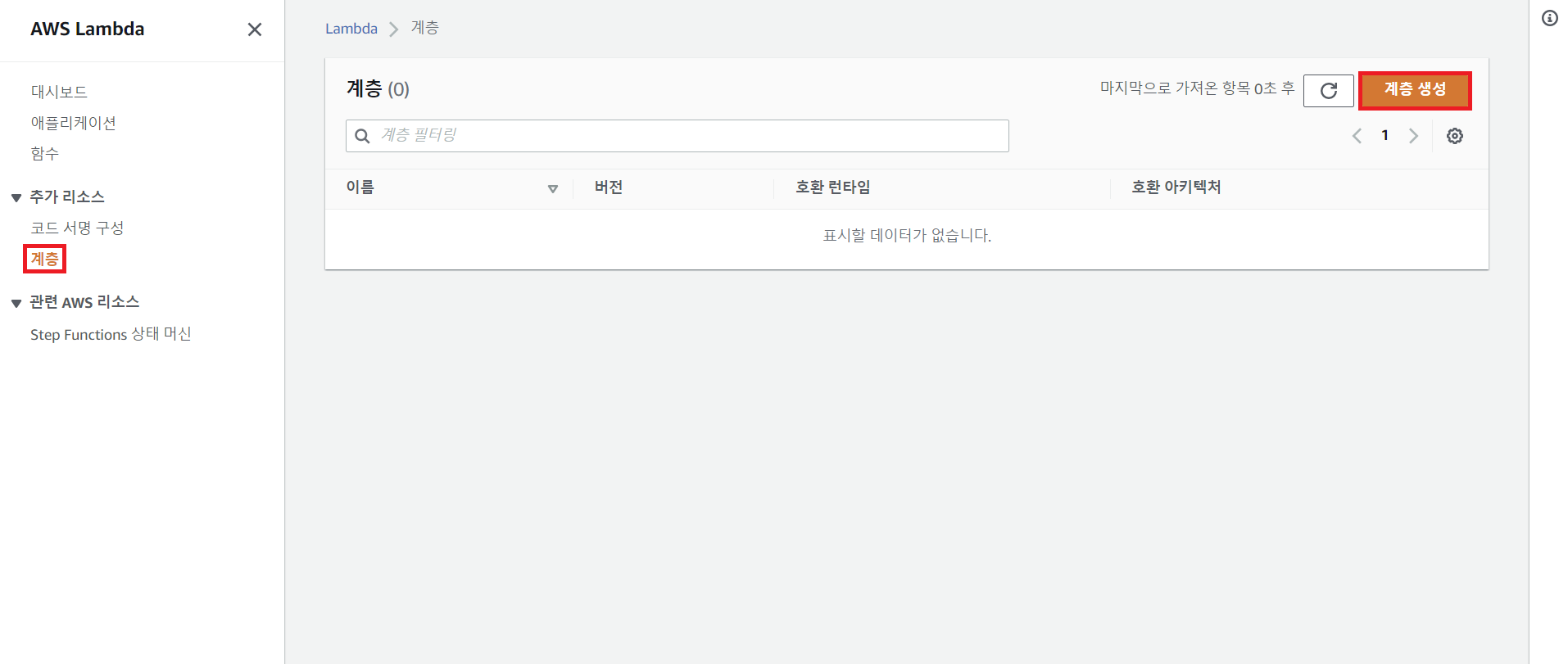 Lambda Layer에 등록할 수 있는 zip 파일 형태의 라이브러리를 별도로 작성하여야 하며,