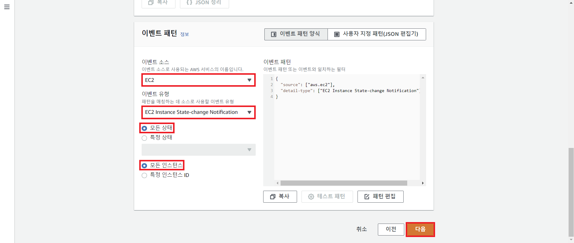 * CloudWatch Event를 활용하여 EC2 인스턴스의 상태에 대해 모니터링을 수행하고,