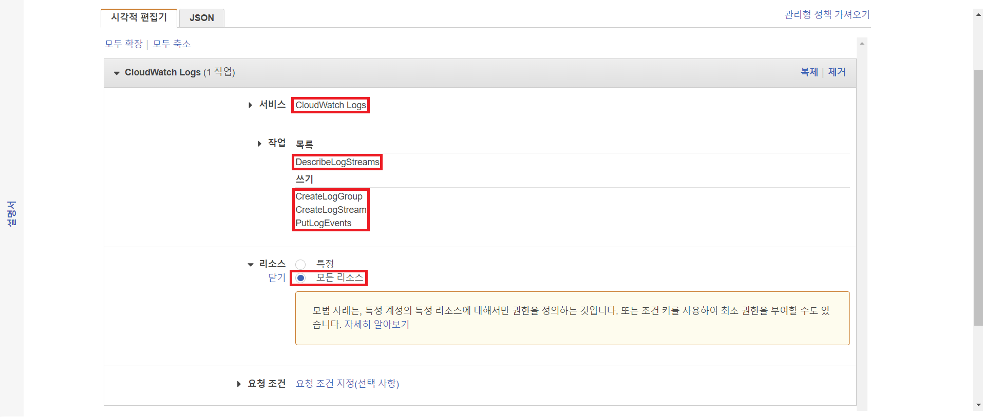 # awslogs 설정 (맨 아래에 내용 추가)