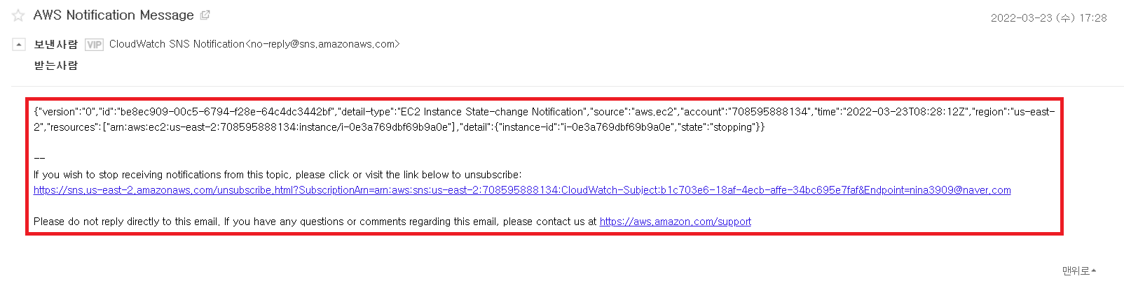 EC2 인스턴스의 상태가 변경되면 SNS를 활용하여 자동으로 이메일을 발송할 수 있도록 한다. *