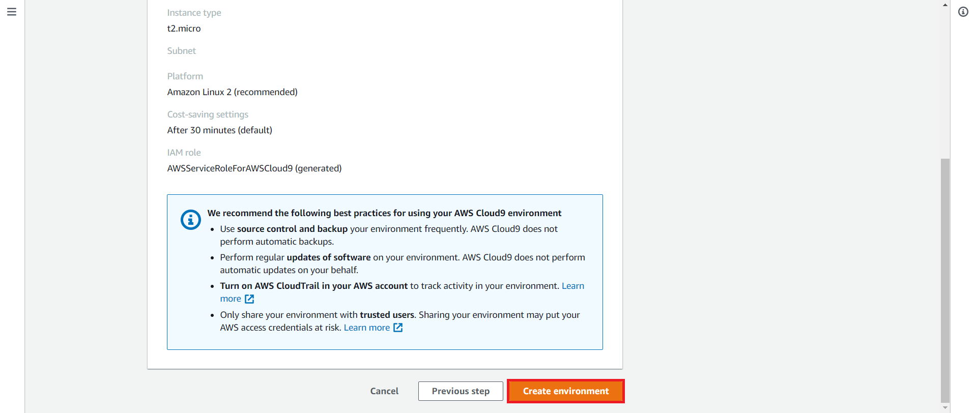| 프리티어(Free Tier) | - AWS 프리티어 이용 시 AWS Cloud9을 무료로 사용할 수 있음 - AWS Cloud9의 프리티어 초과 시 초과 리소스에 대해 일반 요금 부과 |