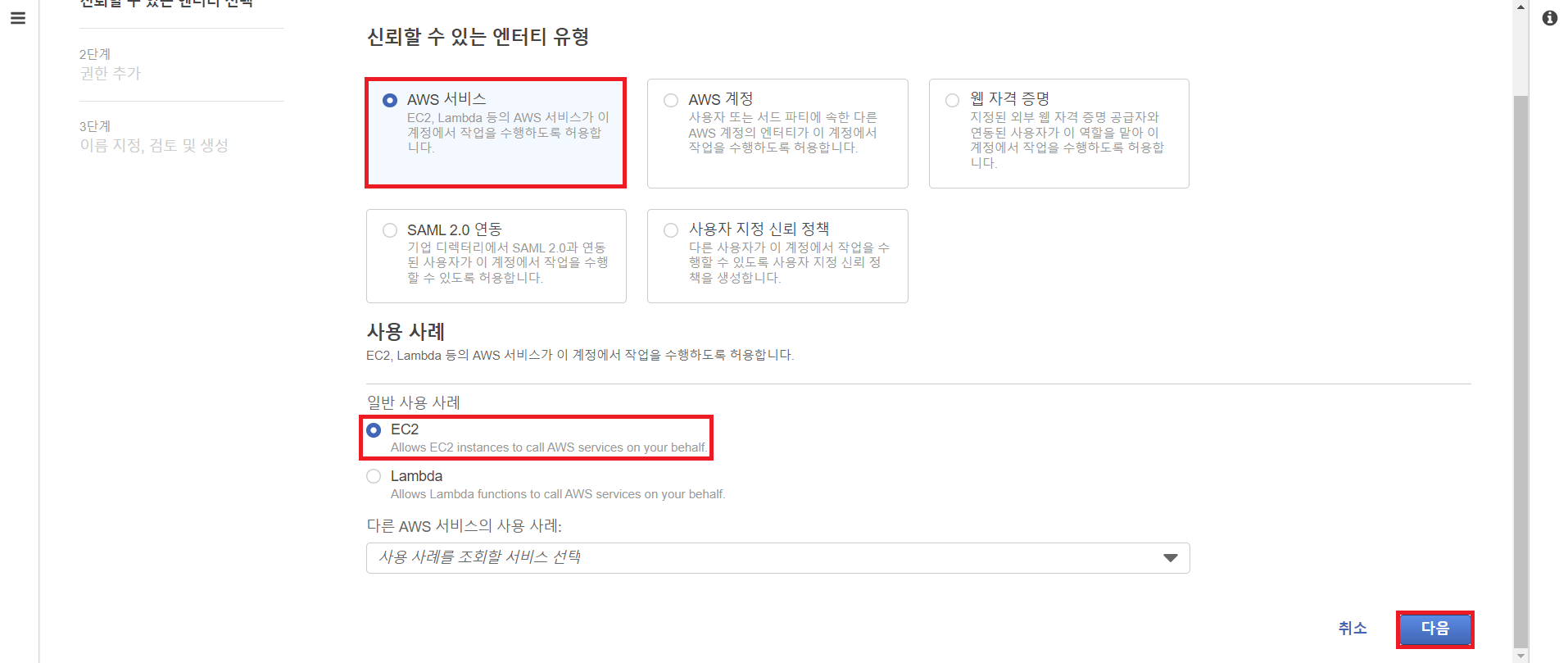 Step 1 서비스 역할 및 IAM 인스턴스 프로파일 생성