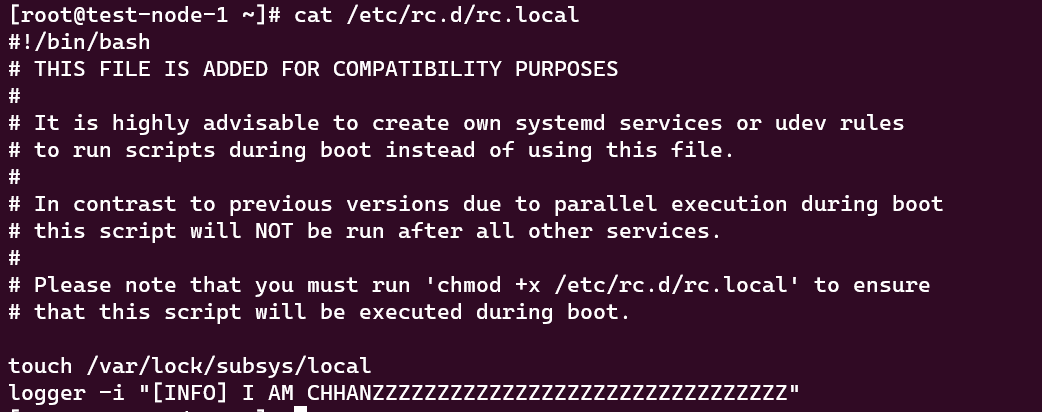 [root@test-node-1 ~]# chmod +x /etc/rc.d/rc.local