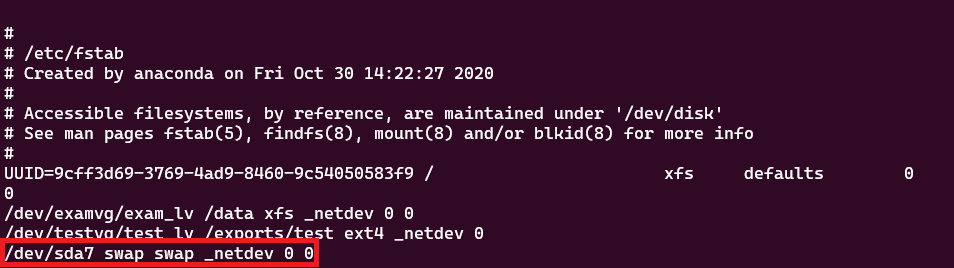 [root@server-1-lab ~]# swapoff /dev/sda7