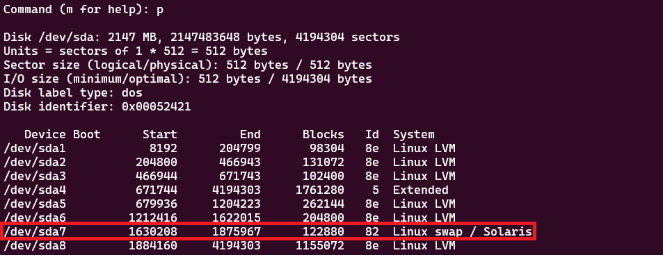 [root@server-1-lab ~]# mkswap /dev/sda7