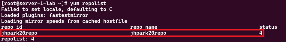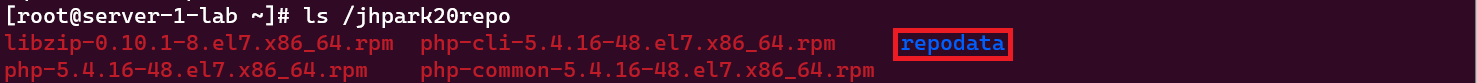 [root@server-1-lab ~]# createrepo /jhpark20repo