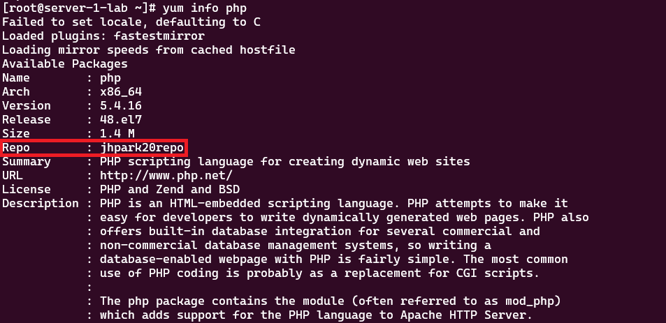 [root@server-1-lab ~]# yum install php --downloadonly --downloaddir=/jhpark20repo