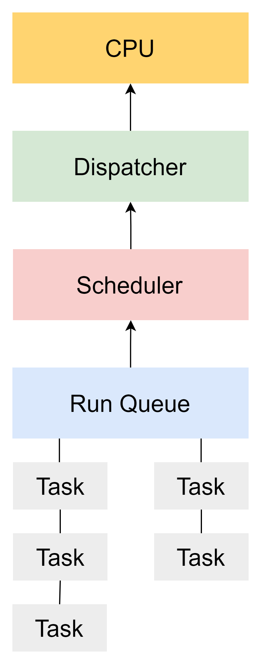 - Scheduler는 유휴 상태에 있던 프로세스가 깨어나거나 특정 프로세스가 스케줄링을 양보하는 등의 경우에 Run Queue에서 우선순위가 가장 높은 프로세스를 꺼내서 Dispatcher에 넘겨준다.