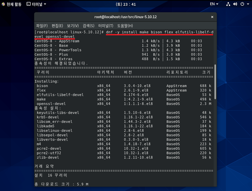 [실습 1] CentOS 8의 커널을 최신 커널로 업그레이드하자.