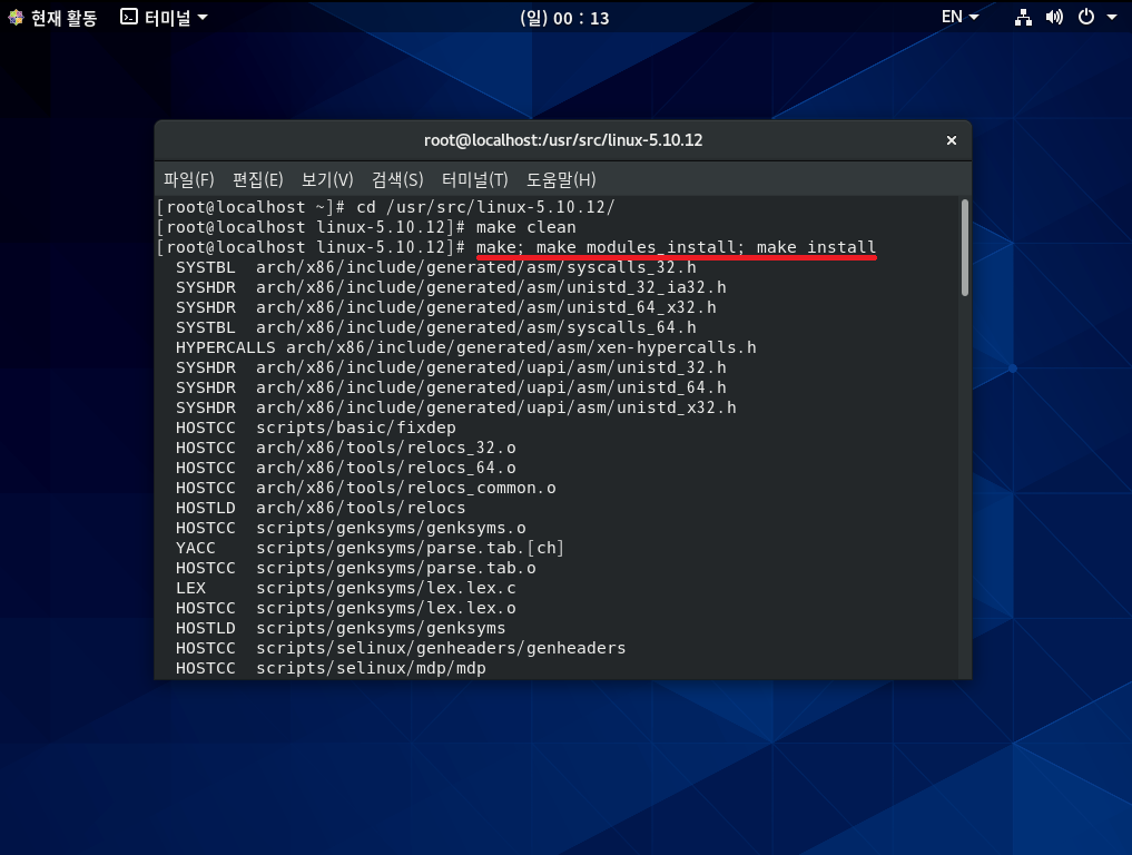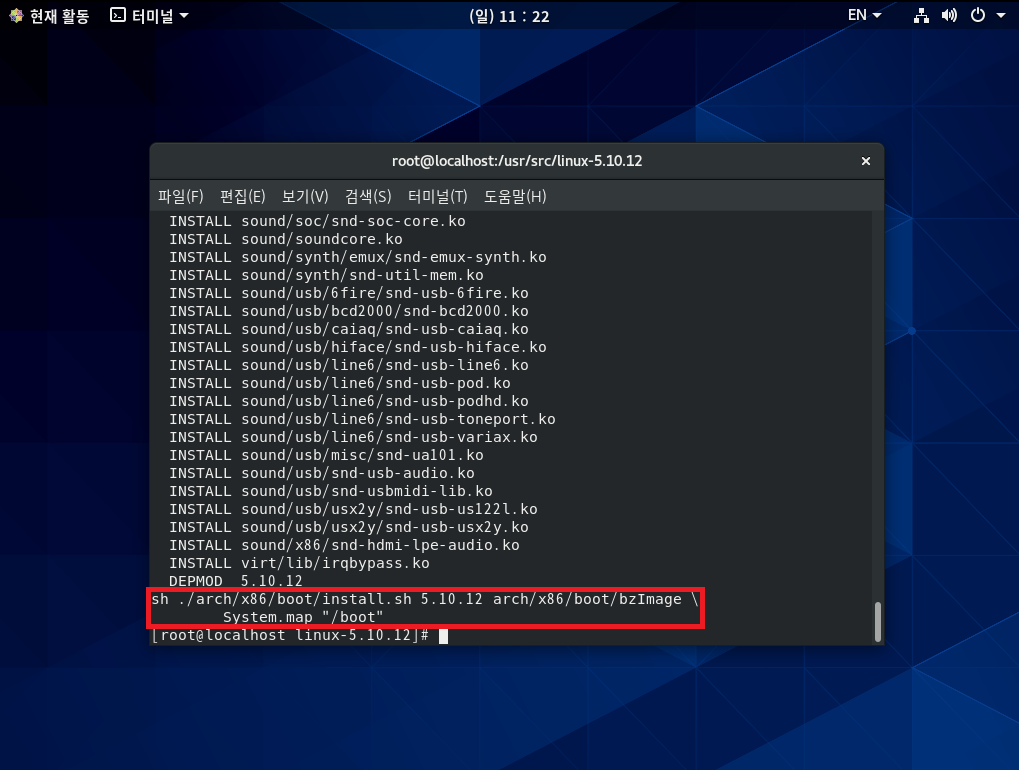 make install 명령은 실제 컴파일된 커널을 /boot 디렉터리에 설치하는 과정이다. *
