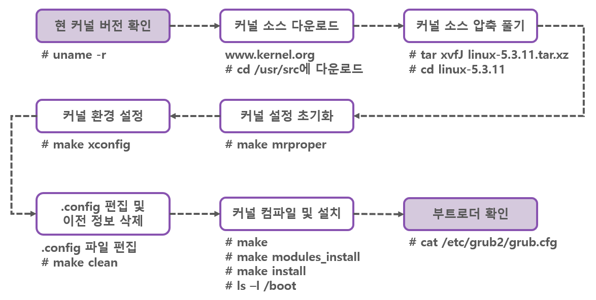 * make 명령은 커널 컴파일 환경 설정대로 소스 파일을 실제 컴파일하는 과정이며,