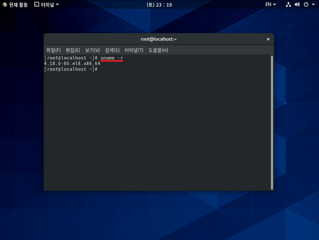 커널의 실체도 결국은 파일이므로, CentOS 8의 커널은 /boot/vmlinuz-4.18.0-80.el8.x86_64이며, 이번 실습에서 커널 컴파일 결과는 /boot/vmliuz-5.3.11 파일이 될 것이다.